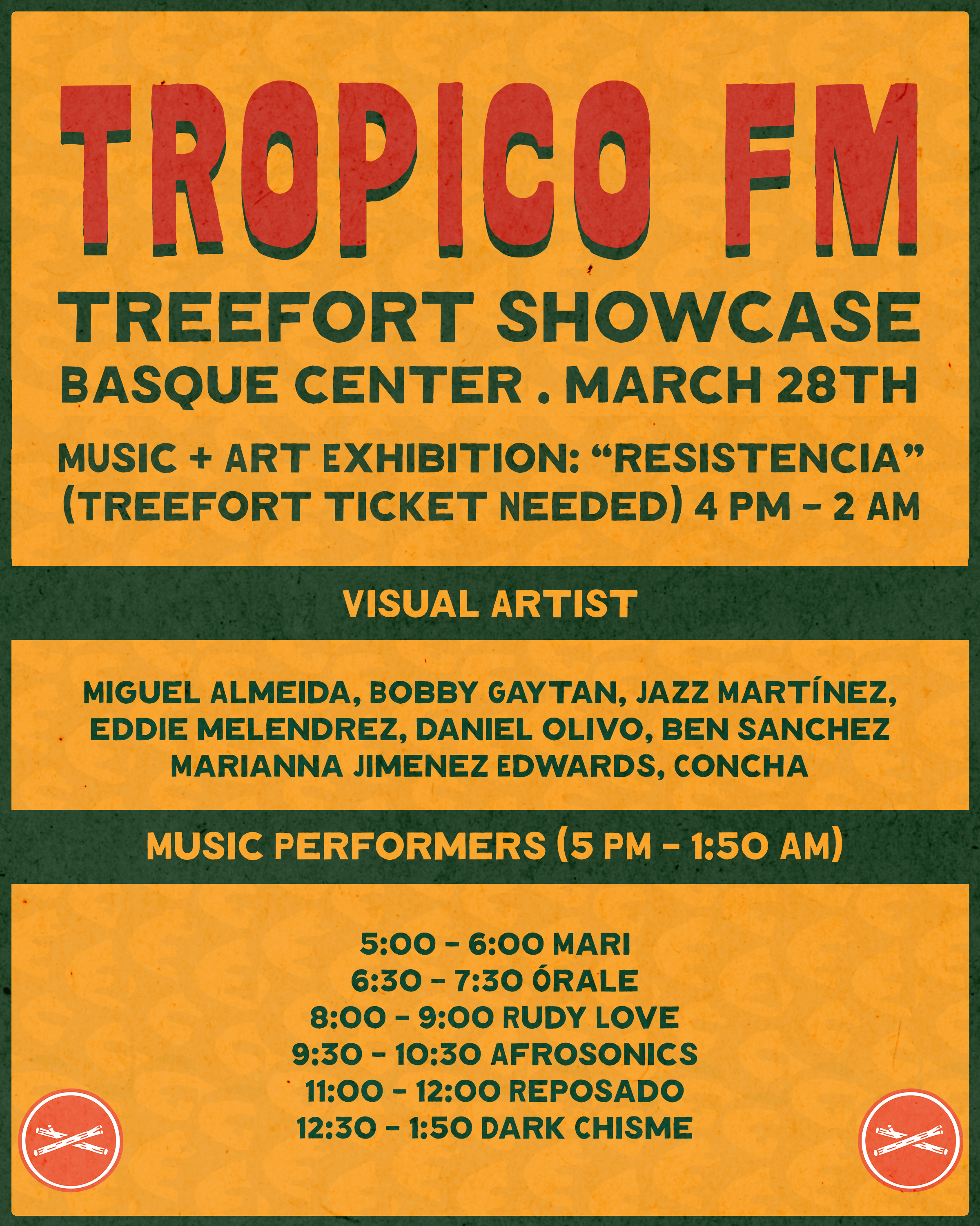 Resistance is the theme for this year’s Treefort Tropico FM showcase. This exhibition invites artists and viewers to reflect on the ways we resist assimilation and the erasure of culture—both quietly and boldly.