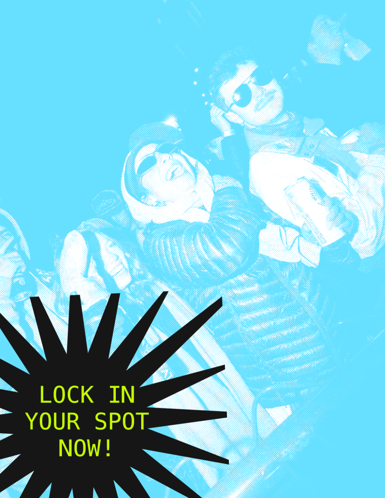 Sing along to your favs with Petey USA. They absolutely rip on stage (and on the slopes) and we guarantee you’ve caught Petey’s unhinged TikTok vids. Catch Husbands, the OK-based indie rock duo whose shimmering melodies & catchy hooks have earned them a loyal following, alongside Boise locals Plum Vision, who are experts at bringing dreamy soundscapes to life, & Hudson Powder Company, a band with a sound as bold as the Idaho mountains. Gates at 3:30pm